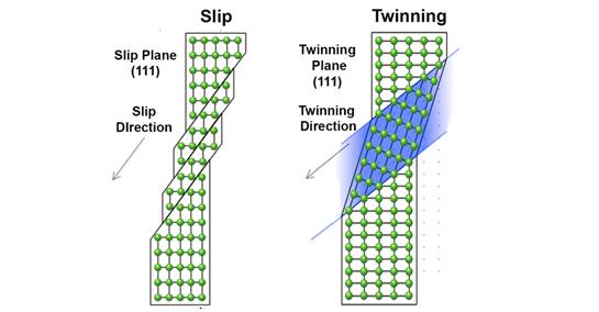 (左) 滑移 (右) 孿晶