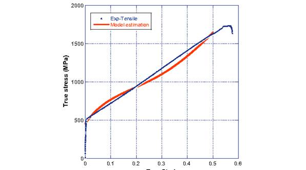 圖7 TWIP鋼的試驗及預測的真應力-應變曲線