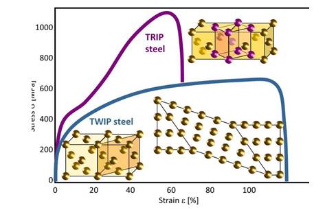 圖10 TWIP鋼應力-應變曲線中兩種主要的形變機制: