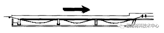 圖6為淺槽紊流酸洗工藝,它是在淺槽酸洗的基礎上應用了紊流技術,使酸洗技術得到了極大的發展。采用紊流技術的淺槽酸洗很大程度上縮短了酸洗時間、減少酸液消耗量、提高產品質量,從而使該技術得到快速推廣,現在新建的酸洗線均采用了淺槽紊流酸洗工藝。