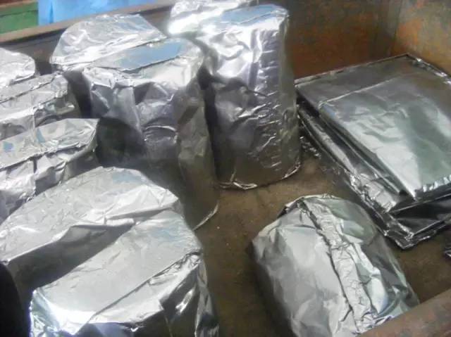 近年來,我們單位對一些重要的模具(主要是4Cr5W2VSi材料的模具,這種材料脫碳和增碳都對模具熱處理后的硬度影響較大)采用不銹鋼包膜紙保護,減少模具表面的氧化、脫碳(見圖3)。不銹鋼包膜紙是俗稱,也就是超薄不銹鋼箔,其厚度為0.03 ~ 0.10mm。因為很薄,能像紙一樣折疊包裹模具,密封性能好、耐高溫。另外,模具經過包裹后就能直接在電爐里加熱,不需要裝箱保護,可以大大縮短模具的加熱時間。
