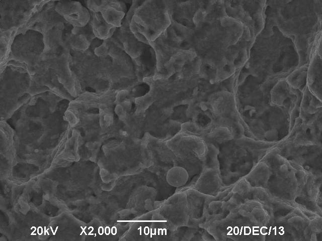 用掃描電鏡對斷口進(jìn)行檢查,在裂紋源附近可見大量放射狀條紋。放射狀條紋的收斂處,明顯指出裂紋源位于穩(wěn)定桿螺栓的表面。工件的表面有許多斷續(xù)分布的大小不一的凹槽及剝落坑,在裂紋源左側(cè)有兩塊較大的并排分布的剝落坑,剝落坑的下面可見多源臺階條紋,這種多源臺階條紋屬于應(yīng)力集中的典型特征。在放射狀條紋的突起處,明顯分布數(shù)量眾多的顆粒狀產(chǎn)物,這種細(xì)小的顆粒狀產(chǎn)物,經(jīng)檢測確認(rèn)為A類非金屬夾雜物,屬于典型的硫化物夾雜。(見圖3)。心部調(diào)質(zhì)區(qū)域的斷口檢查,掃描電鏡觀察結(jié)果顯示為韌性斷裂,圖片顯示以韌窩及撕裂棱的特征形貌為主。在韌窩的底部同樣存在顆粒狀及條狀硫化物夾雜(見圖4)。