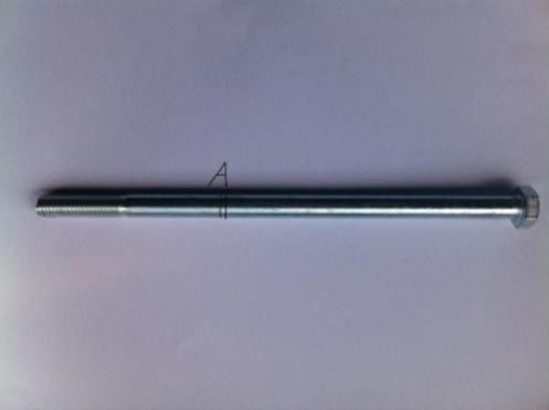 40Cr鋼穩(wěn)定桿螺栓,在汽車后橋上起到支撐穩(wěn)定桿的作用,并以鎖緊螺母將穩(wěn)定桿固定。穩(wěn)定桿螺栓的加工工藝流程為:鋸床下料→熱加工鍛造→調(diào)質(zhì)處理→桿部搓絲→鍍鋅處理。在服役過程中,穩(wěn)定桿螺栓在鎖緊螺母的作用下,產(chǎn)生一個拉伸的縱向應(yīng)力。隨著工件的服役承載,穩(wěn)定桿產(chǎn)生較強(qiáng)的牽引,螺栓受到向右的側(cè)向拉應(yīng)力。整車試行過程中,螺栓的桿部發(fā)生早期失效斷裂。該螺栓的使用周期極短,持續(xù)時間不足24h。斷裂部位位于圖示的A處,與桿部縱向近似垂直的橫向斷裂(見圖1)。