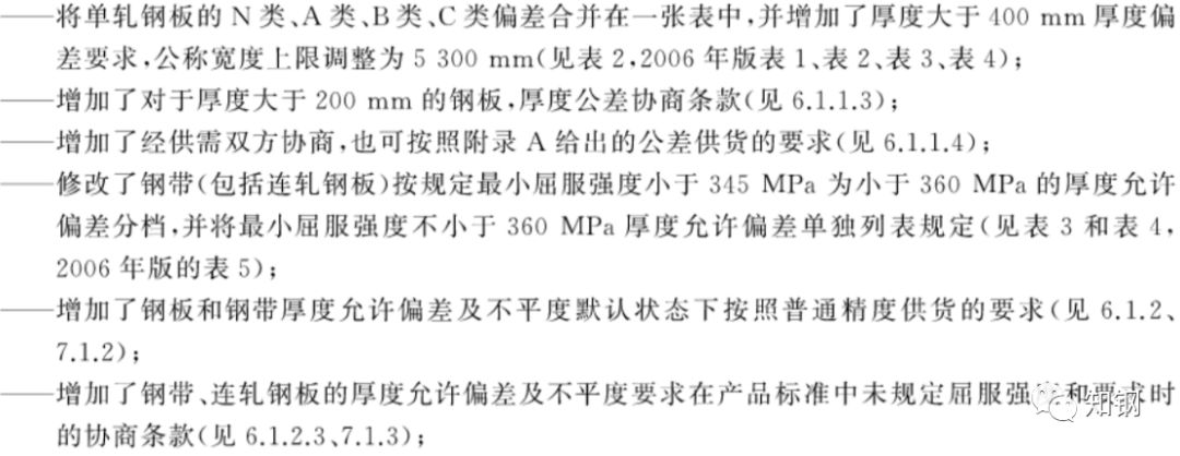 此次修訂關(guān)于單軋鋼板厚度偏差方面實質(zhì)性改動不大。主要變動如下: