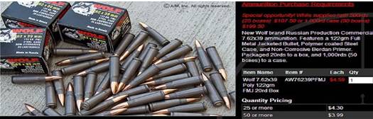俄羅斯產(chǎn)鋼殼7.62x39毫米突擊步槍子彈