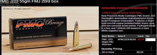 韓國產(chǎn)銅殼5.56毫米北約突擊步槍彈