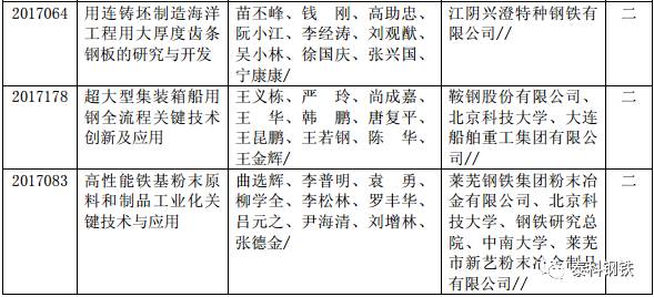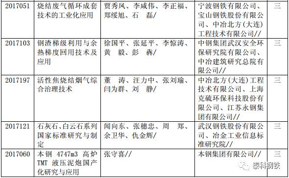 2017年冶金科學技術獎推薦獲獎項目(82 項)
