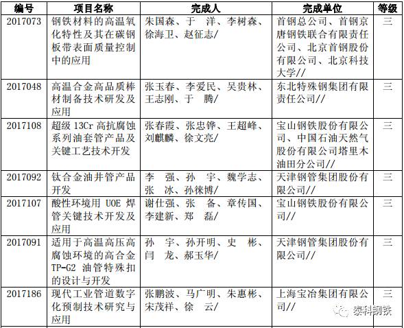 近日,冶金科學技術獎獎勵委員會辦公室公布了2017年中國鋼鐵工業協會、中國金屬學會冶金科學技術獎(簡稱冶金科學技術獎)推薦獲獎項目名單,并將獲獎項目的名稱、完成單位、完成人、推薦等級等向社會公告。根據專業評審結果,2017年共推薦獲獎項目82項,其中:特等獎3項,一等獎14項,二等獎22項,三等獎43項。冶金科學技術獎是中國冶金行業最高科學技術獎,恭喜各獲獎單位和技術大拿們,趕緊來看看都有誰獲獎了吧!