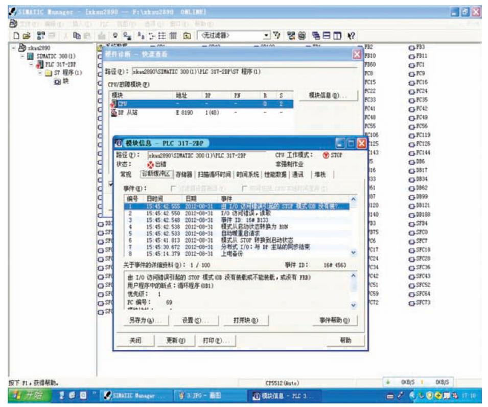 圖2 STEP7硬件診斷緩沖區