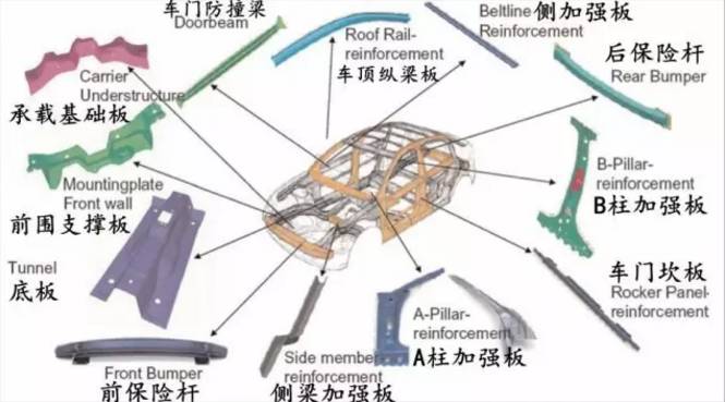 德國(guó)蒂森克虜伯公司、美國(guó)本特朗特公司、安賽樂米塔爾公司都可提供超高強(qiáng)度的熱沖壓部件。