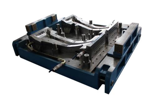 熱沖壓成形模具。在熱沖壓過(guò)程中鋼板和模具都要經(jīng)過(guò)從900℃以上到室溫這一復(fù)雜的溫度變化。模具集對(duì)板料成形與淬火作用于一身,其材料選擇、結(jié)構(gòu)設(shè)計(jì)都有嚴(yán)格的要求,對(duì)于熱沖壓部件最終性能有著重要影響。