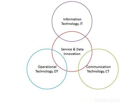 工業物聯網核心架構,由三個技術進行高度整合。分別為信息系統(Information Technology, IT)、操作技術(Operational Technology, OT)與通訊技術(CommuNIcation Technology, CT)。我們常泛指信息通訊技術(Information & Communication Technology, ICT)與信息通訊產業。到2025年時,將匯流成ICOT技術或稱為ICOT產業。