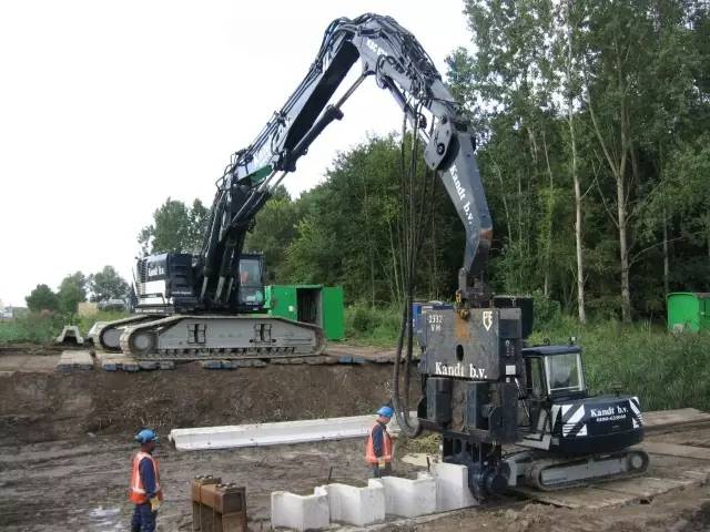 修建地下城市綜合管廊時(shí)的挖掘工作由鋼板樁墻來保護(hù)。免共振液壓錘允許您在現(xiàn)有建筑旁施工,不會(huì)因噪聲而擾民,亦不會(huì)因低頻振動(dòng)破壞建筑。AZ型鋼板樁也可用于鐵路、高速路立交橋和車庫(kù)的永久荷載支撐結(jié)構(gòu)。能獲得好的土壤保持和好的承載力兩大功能。中等的815C和更大的1412C錘常常被選用做這些建設(shè)項(xiàng)目。混凝土板樁!在河和航道岸邊,混凝土板樁成本較低、養(yǎng)眼。標(biāo)準(zhǔn)強(qiáng)度的混凝土樁可以用液壓振動(dòng)錘來打,較薄的混凝土板樁很容易因共振而受損,必須采用免共振液壓錘。