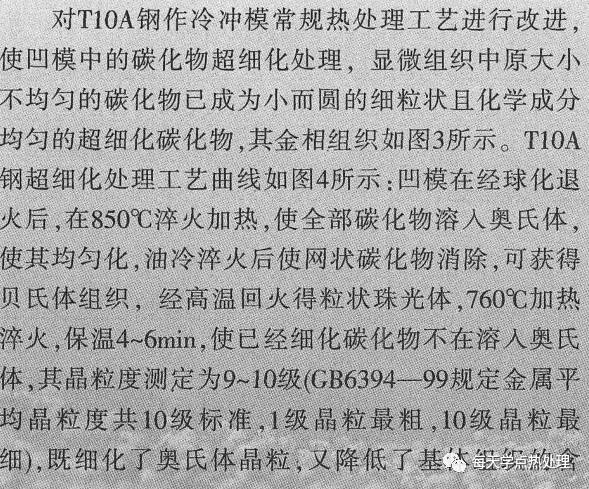 針對T10A鋼制作的簡單冷沖模具,經常規熱處理后,在生產過程中凹模常會出現韌性差,發生早期斷裂失效現象。本文對常規熱處理工藝進行了分析,提出了凹模碳化物超細化處理工藝,達到了預防凹模出現早期斷裂和提高壽命的目的。