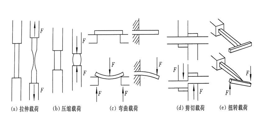 材料失效行為一般是與外力(F) 作用的方式有關。構件上作用的外力類型一般有五種: