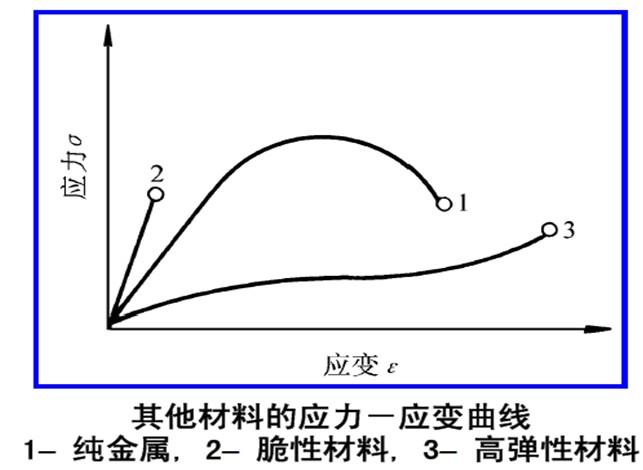 在材料的拉伸應力-應變圖中,橫坐標和縱坐標分別為材料的應變ε(strain)應力和σ(stress) 。