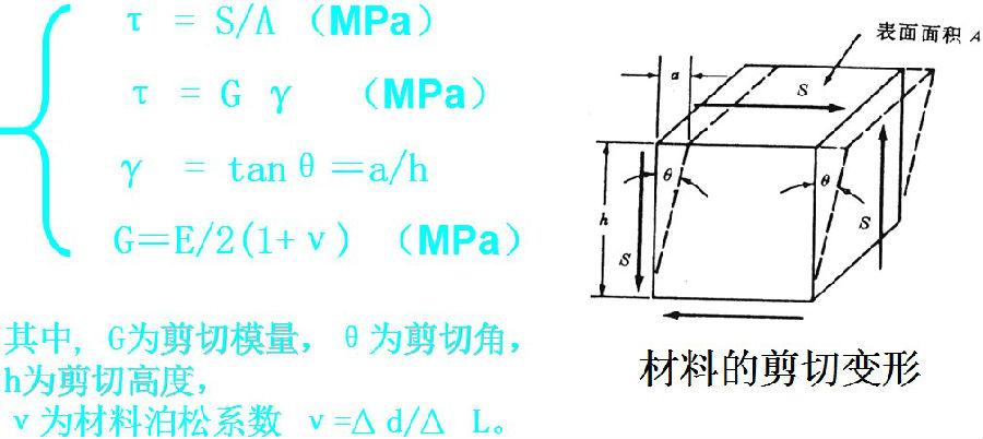 當材料受到剪力(S)作用時,其剪應力τ (shear stress)與剪應變γ(shear strain) 有如下關系:
