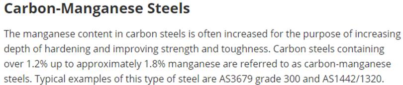 碳錳鋼(C-Mn鋼):在碳素鋼中,錳含量約在1.2%~1.8%之間的,通常被稱為C-Mn鋼。