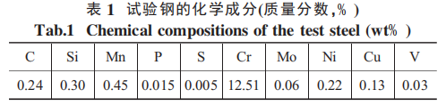 選用試驗鋼在真空感應爐中進行生產, 材料的基本化學成分如表 1 所示。鋼坯的熱鍛 在 900~1000℃,然后在700℃時進行退火處理,最后空冷至室溫。
