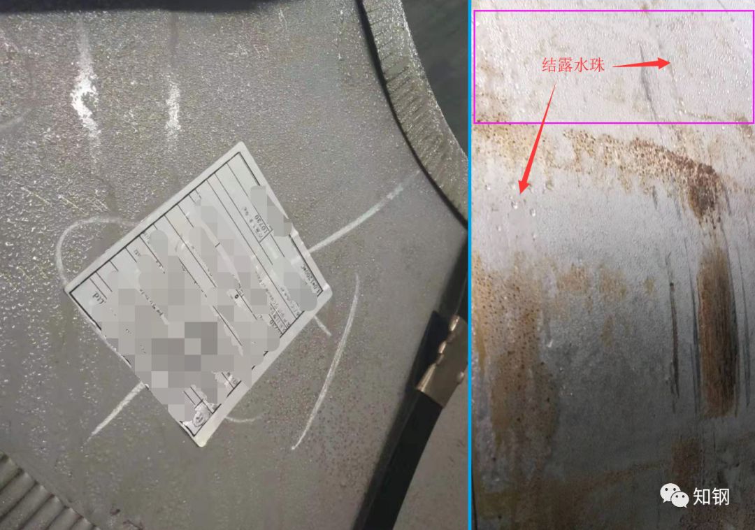 開包加工時發(fā)現(xiàn)結(jié)露,處置起來非常麻煩,因為是密布在整個板面的,所以補(bǔ)涂油也無法降低銹蝕風(fēng)險。