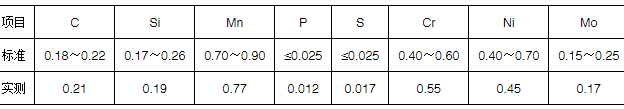 在軸上取樣,進行鋼材化學成分分析,結果見表1。由表1可見,各元素含量正常,均符合技術要求。
