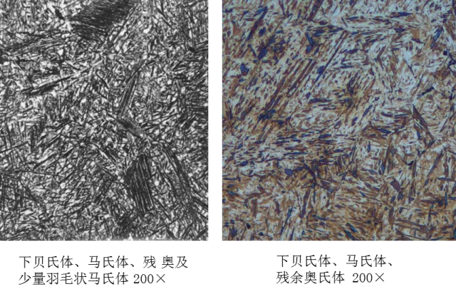 板條馬氏體:尺寸大致相同的細馬氏體條定向平行排列,組成馬氏體束或馬氏體領域;在領域與領域之間位向差大,一顆原始奧氏體晶粒內可以形成幾個不同取向的領域。由于板條狀馬氏體形成的溫度較高,在冷卻過程中,必然發生自回火現象,在形成的馬氏體內部析出碳化物,故它易受侵蝕發暗。