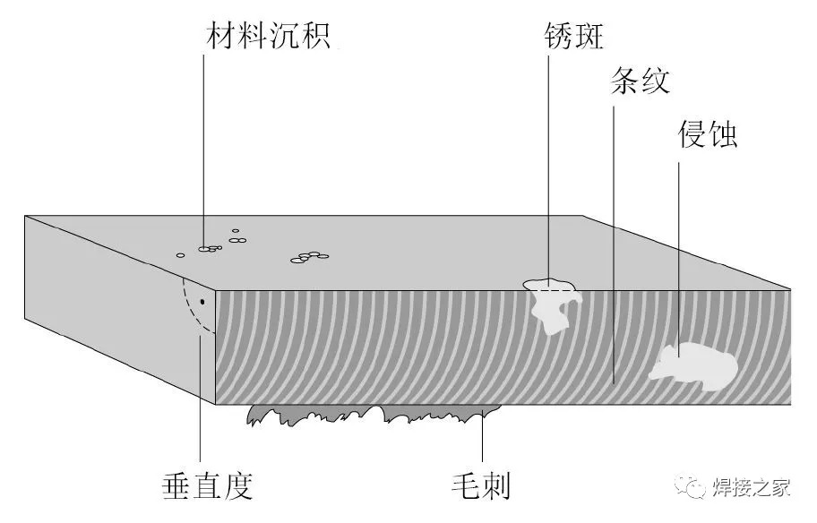 有許多判定激光切割邊緣質量的標準。像毛刺形式、凹陷、紋路等標準可以用肉眼判定;垂直度、粗糙度和切口寬度等則需要采用專用儀器來測量。材料沉積,腐蝕,熱影響區域和變形也是衡量激光切割質量的重要因素。