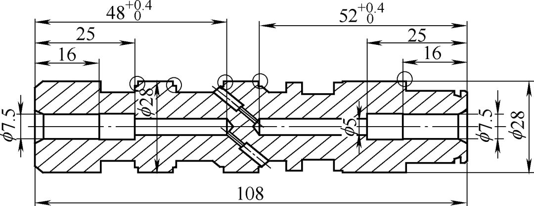 我公司生產的轉向器控制閥芯(見圖1),是動力轉向器中的重要零件,材料為GCr15,其作用是通過軸向前后移動,接通油缸左、右油腔,進入油缸的高壓油推動活塞本體軸向運動,活塞本體的齒條帶動垂臂軸的主齒作徑向正、反轉動,通過轉向垂臂、橫拉桿,實現汽車左右轉向。