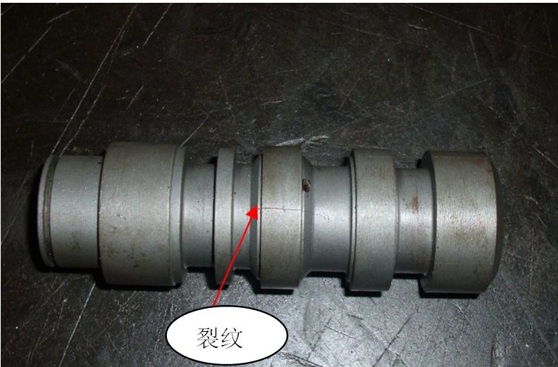 經磁粉探傷檢查裂紋發生位置,一是在零件外圓部位,呈細條狀或細網狀分布,如圖2a所示;二是在臺階溝槽處,呈縱向裂紋分布,裂紋數量較多,如圖2b所示。