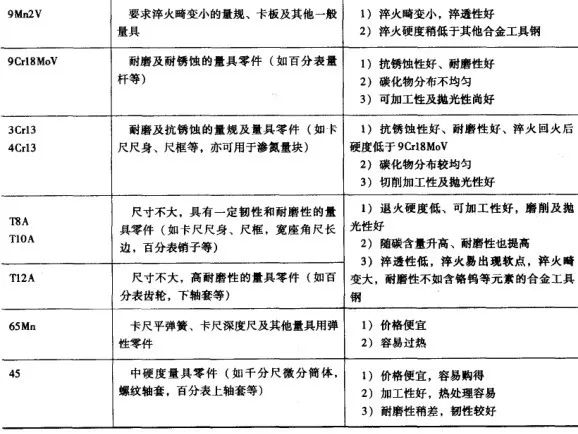 選擇量具用鋼主要考慮耐磨性、尺寸穩(wěn)定性、可加工性和抗蝕性。
