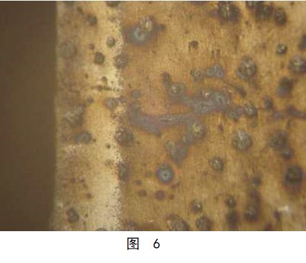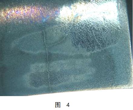 在用3%硝酸酒精腐蝕后,裂紋處出現了白亮色的異常斑塊,如圖4所示。