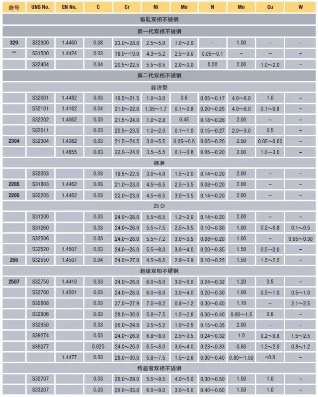 2. 標(biāo)準(zhǔn)雙相不銹鋼如2205,是主要的鋼種,占雙相不銹鋼用量的80%以上;