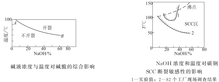 堿脆不僅與堿的濃度有關(guān),還取決于溶液的溫度,見(jiàn)下圖: