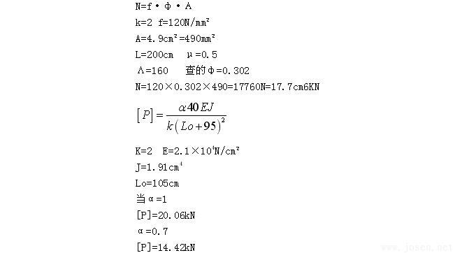 鋼管內應力如超過屈服點,變形就急劇增加,支承桿就出現失穩現象,所以不允許應力達到屈服點,其承載能力不允許達到117kN,當然更不可能用到128kN。由此可以肯定(GBJ113-87)附錄三的支承桿承載能力計算公式不使用于Ф48或更大的鋼管。