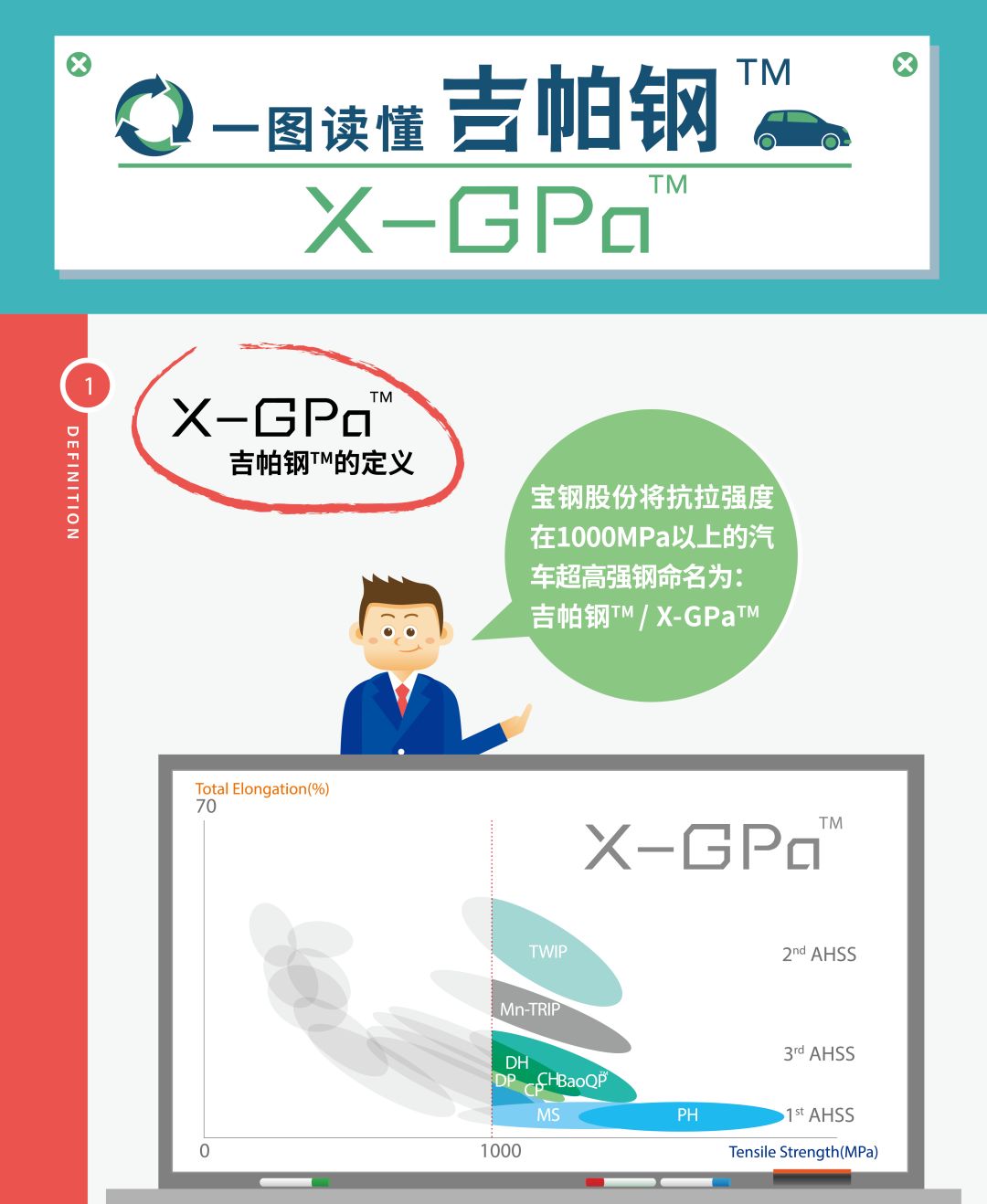 隆 重 發(fā) 布 10月22日,2019寶鋼汽車板用戶座談會(huì)在成都召開。“寶鋼吉帕級(jí)汽車鋼板”產(chǎn)品家族品牌--吉帕鋼?隆重發(fā)布。 一直以來,寶鋼致力于與用戶共同推進(jìn)汽車輕量化和新材料的應(yīng)用。經(jīng)過多年的新產(chǎn)品開發(fā),形成了以QP鋼為代表的全球首發(fā)超高強(qiáng)鋼系列產(chǎn)品,年銷量突破40萬噸,在國(guó)內(nèi)外市場(chǎng)逐步形成了良好的口碑和品牌形象。 2018年,寶鋼“汽車輕量化用吉帕級(jí)鋼板穩(wěn)定制造技術(shù)與應(yīng)用示范”項(xiàng)目獲得了冶金科學(xué)技術(shù)特等獎(jiǎng)。 面對(duì)汽車板產(chǎn)品綠色、安全、成本的發(fā)展需求,面對(duì)日趨激烈的市場(chǎng)競(jìng)爭(zhēng),寶鋼股份隆重推出吉帕鋼?品牌,并將以此為契機(jī)打造寶鋼汽車板的全明星產(chǎn)品陣容。 吉帕鋼?將成為寶鋼踐行可持續(xù)發(fā)展之路的綠色典范,引領(lǐng)全球汽車輕量化選材的新趨勢(shì)。