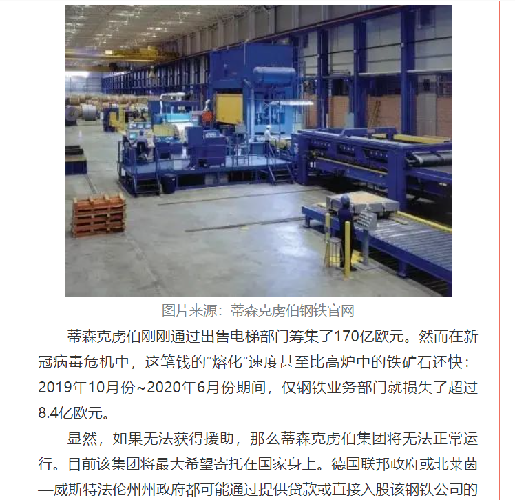 鋼鐵巨頭蒂森克虜伯瀕臨絕境,國有化或為最后的選擇!
