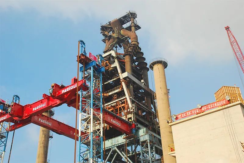 2008年,上海寶冶承擔寶鋼一號高爐快速大修工程,工期78天,較計劃工期提前了7天。高爐大修后擴容至4966 立方米,并首次采用了全國產的并罐式無料鐘裝料工藝,風口以上采用了5段鑲磚銅冷卻壁。高爐于2009年2月15日點火投產,6天后即達產。