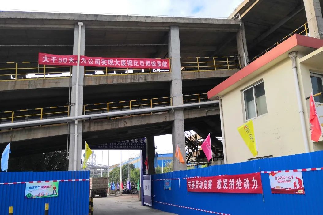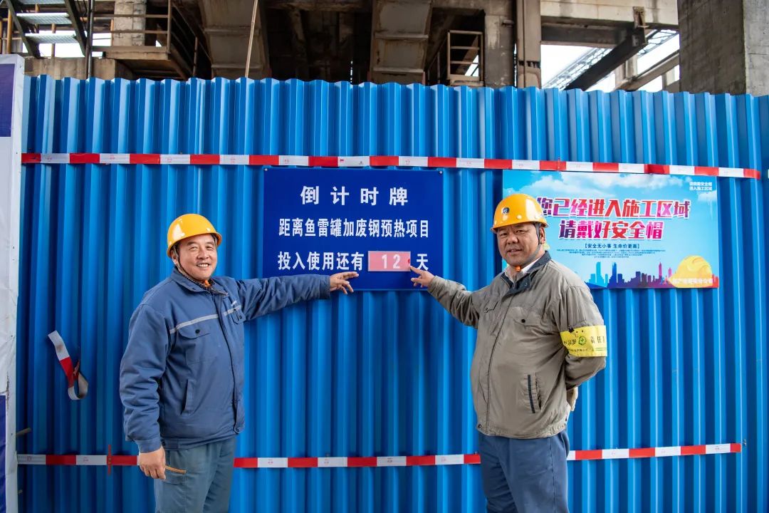 在梅鋼相關部門的鼎力支撐下,現場施工、結構制作、設備制造齊頭并進。2020年11月15日,現場施工正式開始。新事業分公司提出了“大干50天,如期建成魚雷罐加廢鋼預熱項目,為公司大廢鋼比作貢獻”的口號,在施工現場設立倒計時牌,每天盯守現場,隨時檢查進度。