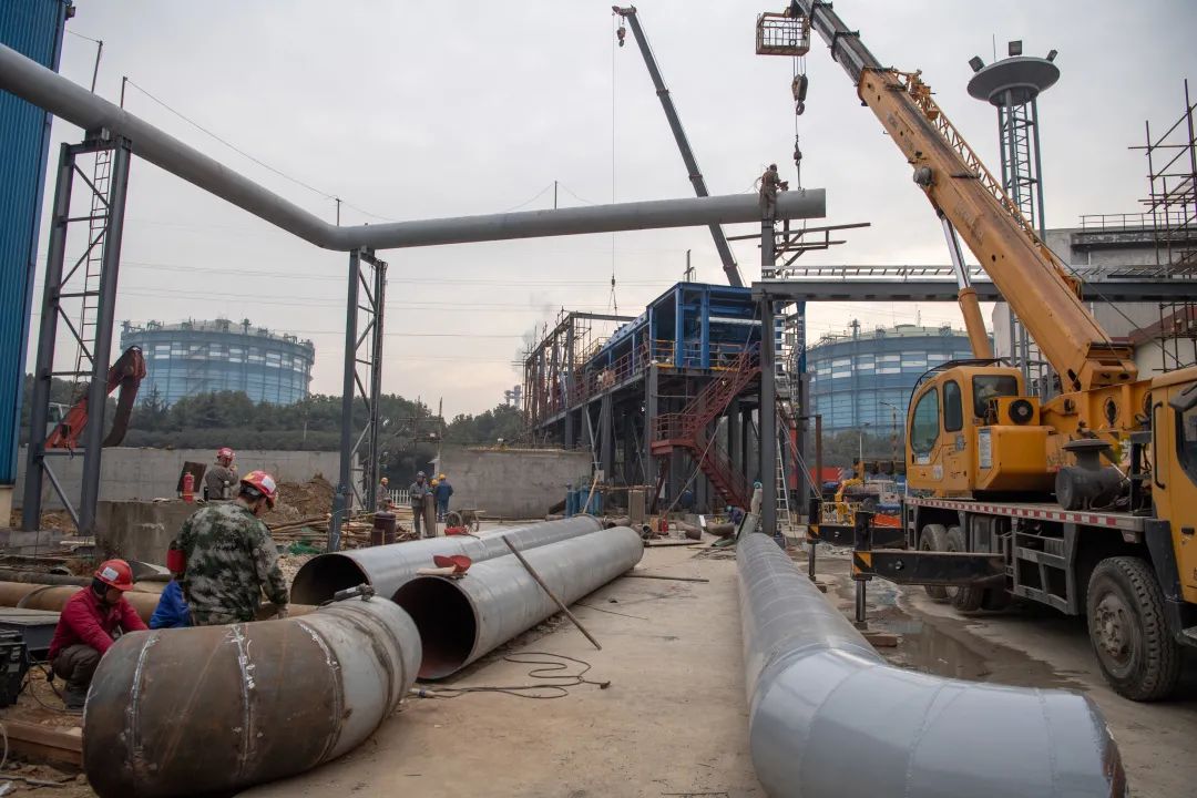 作為國內首創的項目,面對在工程建設和試車調試方面“0”經驗的狀況,新事業分公司項目組成員發揚頑強拼搏精神,克服重重困難,確保項目有序推進:編制進度計劃表,將項目分解成14個分部工程,明確時間節點,確保環環相扣,高效推進;考慮到嚴寒天氣對水池及控制泵站建設的影響,原設計中“泵站廠房結構使用鋼筋混凝土”改為“鋼結構+圍護結構”;詳細分解設備安裝的步驟,使廠房、地坪施工與設備安裝合理交叉進行,有效縮短了施工周期。