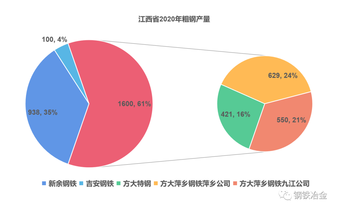 方大鋼鐵在江西的產(chǎn)能規(guī)模在1600萬噸左右,主要分布在萍鄉(xiāng)鋼鐵萍鄉(xiāng)公司(萍鄉(xiāng)安源,萍鄉(xiāng)湘東兩個廠區(qū)),萍鄉(xiāng)鋼鐵九江公司(九江),方大特鋼(位于南昌,2020年年報里粗鋼產(chǎn)量是421萬噸)。還有一家吉安鋼鐵公司有100萬噸的電爐煉鋼產(chǎn)能。