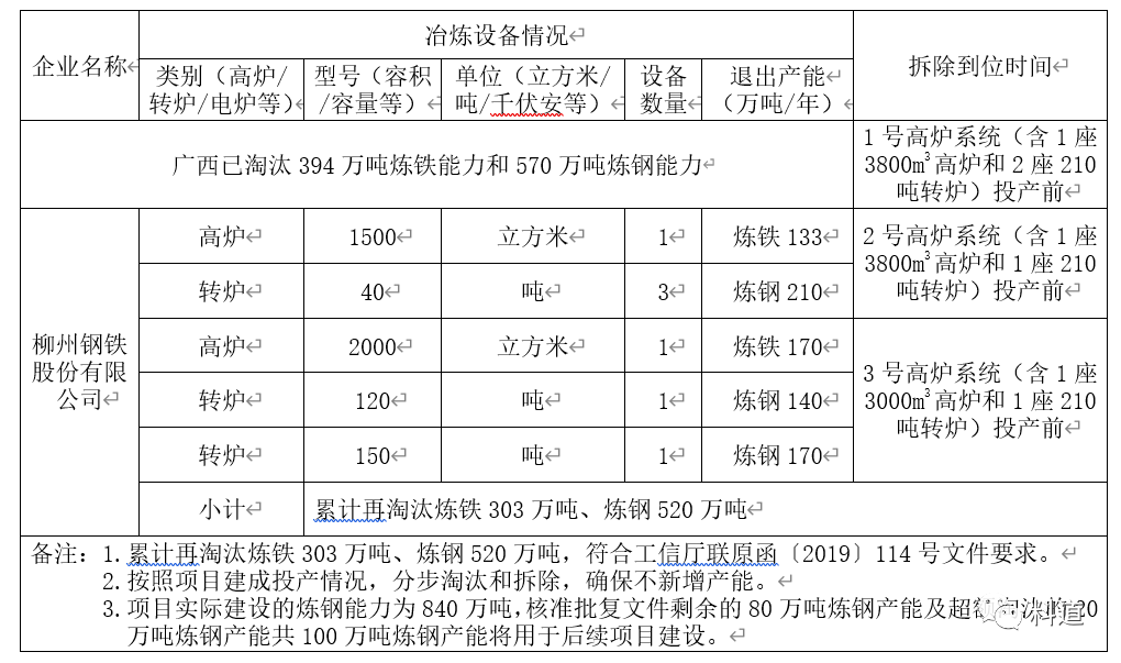 按照《國家發展改革委關于廣西防城港鋼鐵基地項目核準的批復》(發改產業〔2012〕1508號)、《工業和信息化部辦公廳國家發展改革委辦公廳關于廣西防城港鋼鐵基地項目建設的意見》(工信廳聯原函〔2019〕114號)要求,廣西壯族自治區在已淘汰煉鐵產能394萬噸和煉鋼產能570萬噸的基礎上,應再淘汰煉鐵產能300萬噸、煉鋼產能500萬噸。
