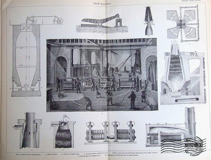 據(jù)史料記載,從公元前1世紀(jì)起在德國境內(nèi)就有了煉制生鐵的記錄。隨著第一次工業(yè)革命的興起,各種新的生產(chǎn)交通工具的發(fā)明對鋼材需求量急速增加,直接推動了鋼鐵工業(yè)的發(fā)展,各種新式煉鋼法也紛紛問世。19世紀(jì)初攪煉法被引入德國,開啟了德國現(xiàn)代鋼鐵工業(yè)的序幕。