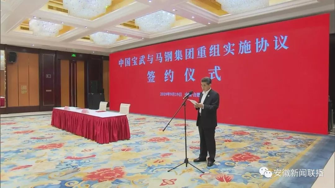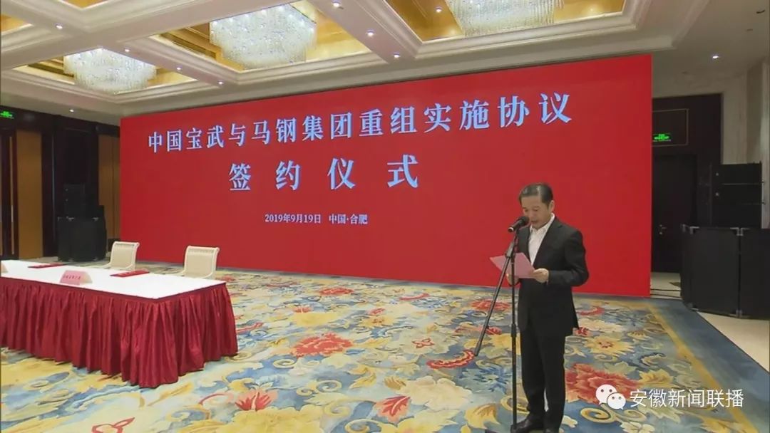 2019年9月19日下午,中國寶武與馬鋼集團重組實施協議簽約儀式在合肥舉行。省委書記、省人大常委會主任李錦斌,國務院國資委黨委書記、主任郝鵬,省委副書記、省長李國英,省委副書記信長星等見證簽約。