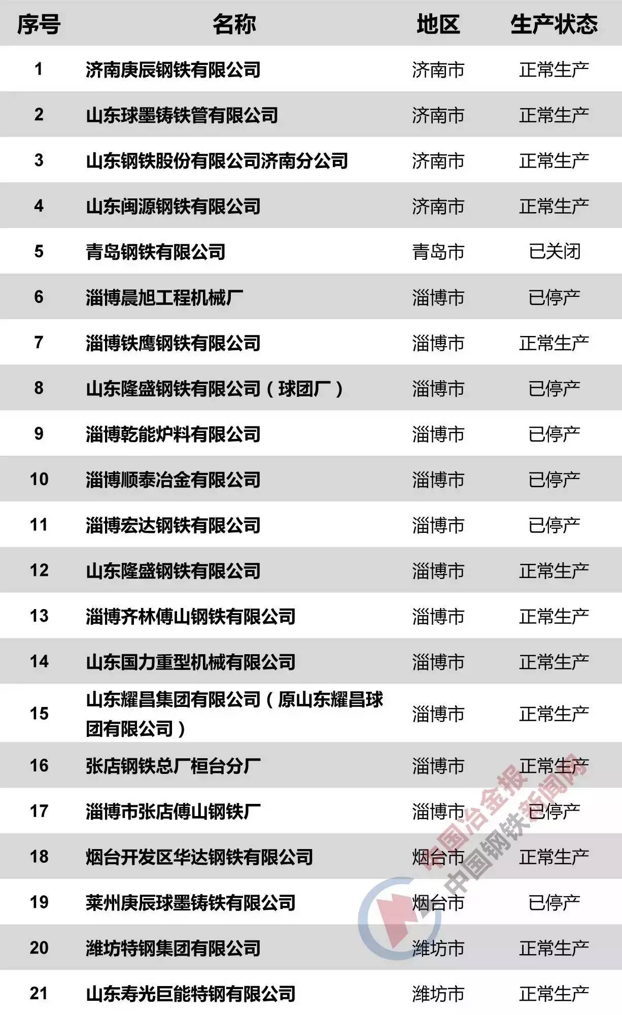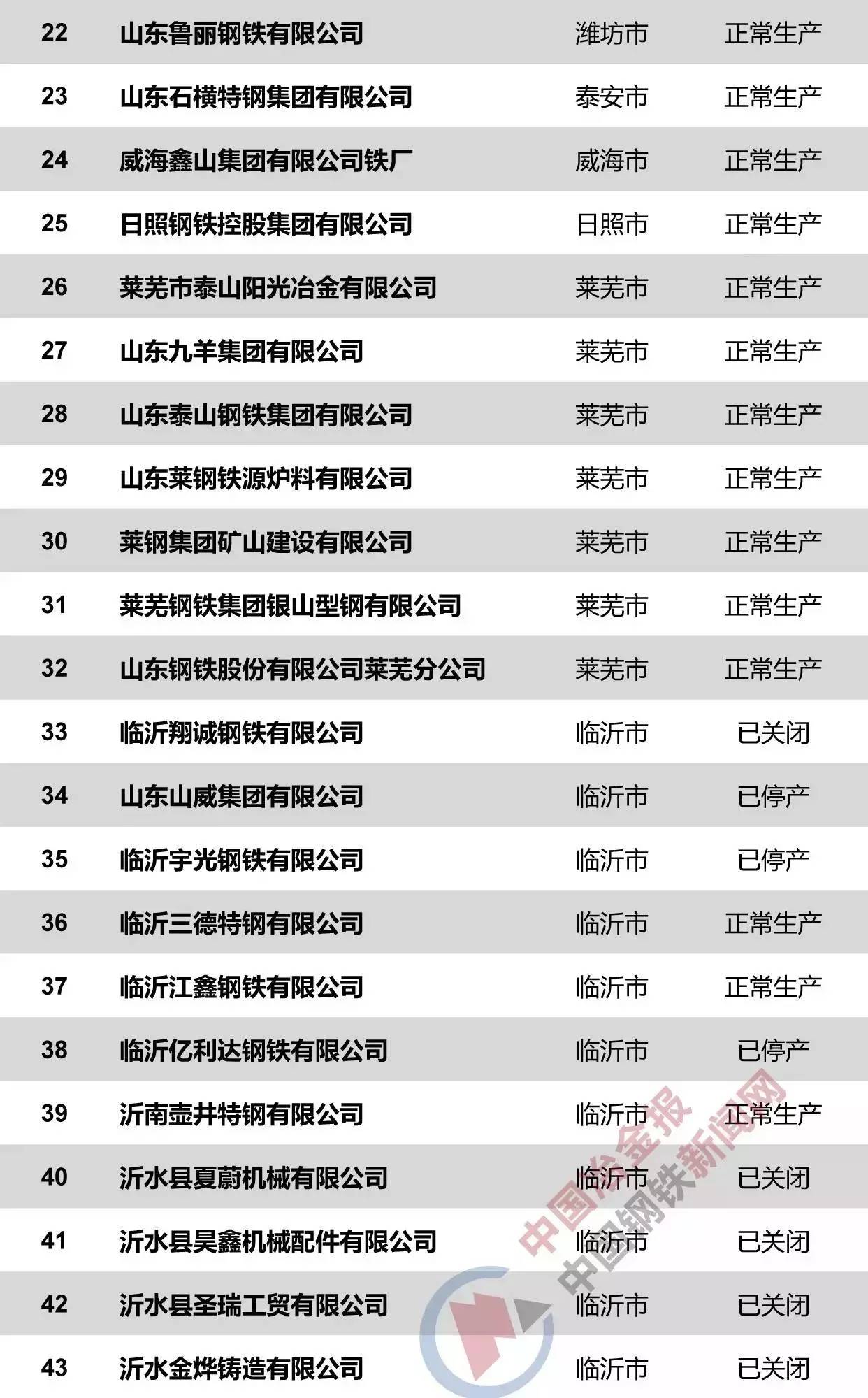 山東省、山西省現在有哪些鋼企?他們現今的生產狀況如何?下表給你最完整的答案。