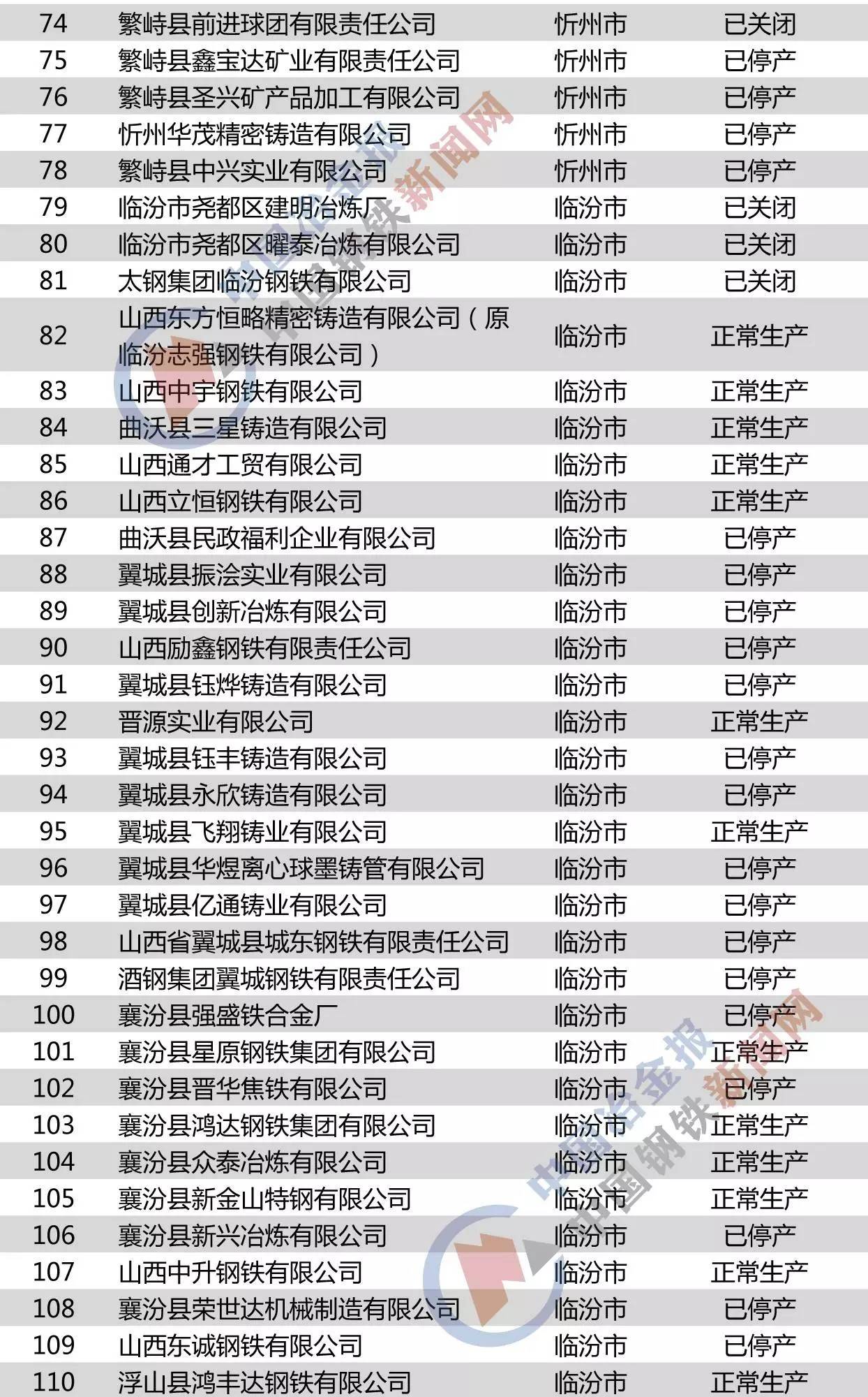 山西省鋼鐵企業名單