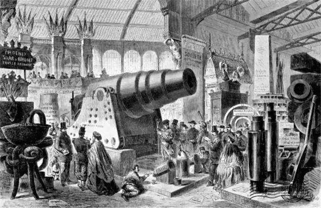 1867年,德國在第二屆巴黎世博會上展出克虜伯軍工廠生產的全鋼線膛后裝大炮