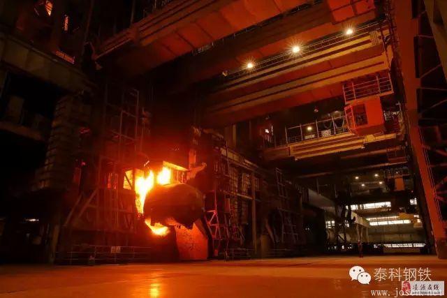 南京鋼鐵兩個(gè)150噸轉(zhuǎn)爐,一個(gè)正在兌廢鋼,一個(gè)正在兌鐵水