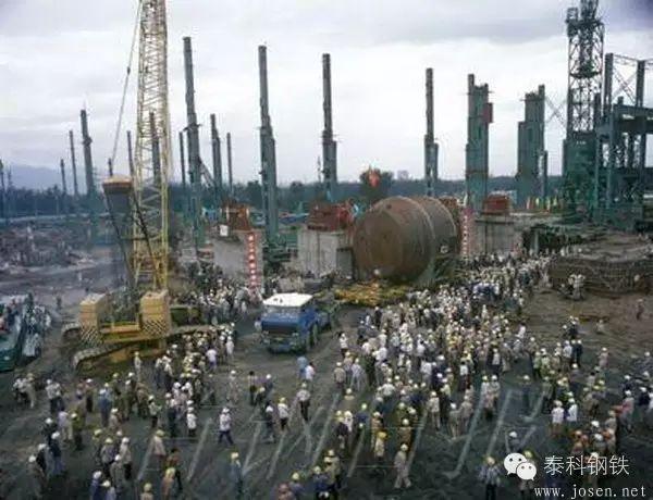 1986年8月重達(dá)206噸的比利時(shí)賽蘭鋼廠210噸轉(zhuǎn)爐整體爐殼運(yùn)到首鋼第二煉鋼廠工地