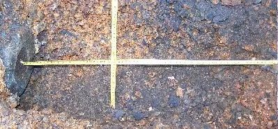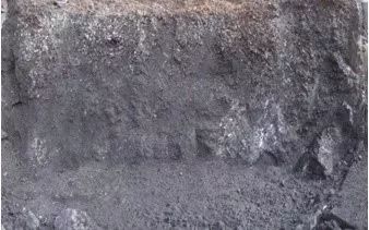 渣鐵界面的分布并不明顯,呈現(xiàn)渣鐵混合逐漸分離的過(guò)渡區(qū)。因此,嚴(yán)格意義上的渣鐵界面只存在于微觀界面,宏觀上渣鐵混合于高爐爐缸某一區(qū)域。現(xiàn)場(chǎng)解剖可以發(fā)現(xiàn),爐渣區(qū)域物料形態(tài)強(qiáng)度較小,渣鐵混合區(qū)和死鐵層的清理較為麻煩,主要是因?yàn)橛捕容^大和混合物較多,類(lèi)似水泥結(jié)構(gòu),有充當(dāng)骨架的焦炭、粘結(jié)的固態(tài)渣鐵等。