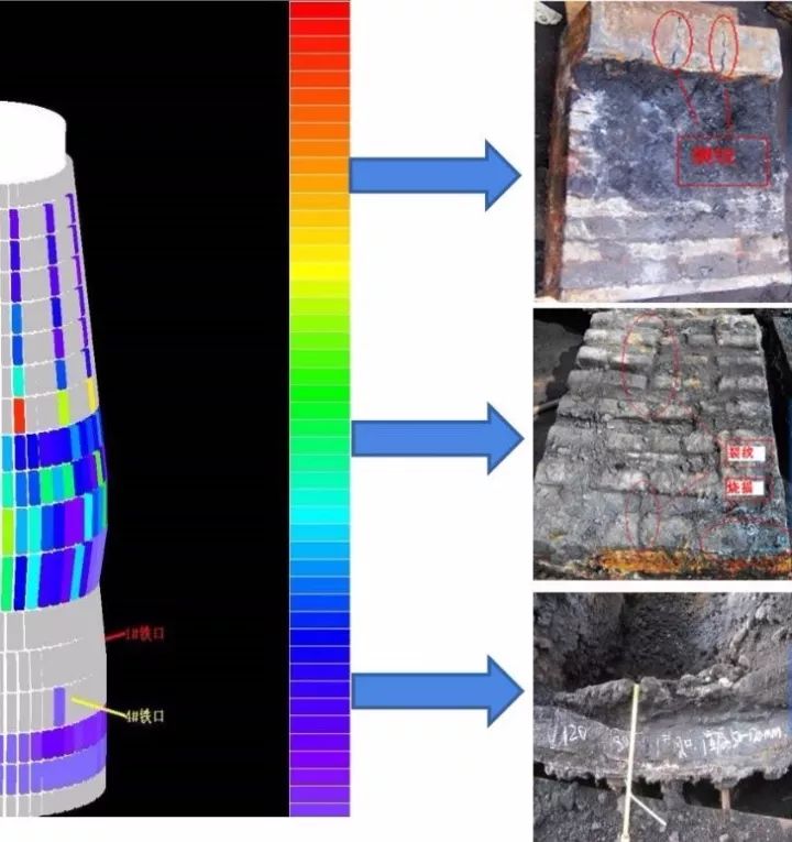 高爐解剖常見(jiàn)現(xiàn)象如下: